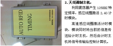 自行车计时系统支持分组计时、计圈计时、净计时总成绩、个人成绩、团体成绩等多种成绩输出方式操作简单、使用方便、性能稳定价格合理,一次投入长期使用可靠的多芯片读取防冲突协议外部发令接口、同步触发按钮、自动天线调谐功能支持 USB闪存本地储存芯片的读取数据成绩实时上传,*网络查询轻松实现现场证书打印可与 LED显示屏连接,比赛期间实现成绩实时滚动,提高 赛事气氛防水、防压、防尘。