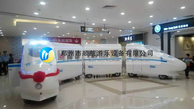 和谐号是郑州顺航游乐设备有限公司于2015新开发的无轨观光火车,外观为玻璃钢材质的和谐号动车造型,逼真美观,适用于景区,游乐场,公园,及大型游乐场。