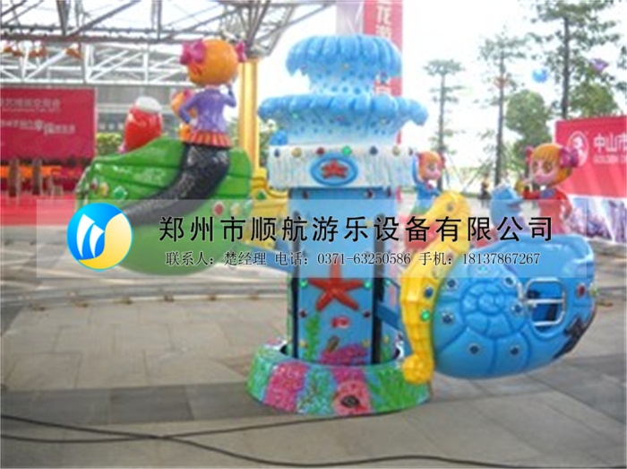 在圆形台面沿曲轨作波浪式转动的情况下,由于美人鱼游乐设备座椅的自转急缓不匀,游客在座椅中,时而缓慢旋转,甚至停滞不动,恰似在风平浪静的海面上悠哉游哉;时而急速旋转,恰似误入漩涡急流险滩,不能自主,任随它变。好似人们在波浪中游玩戏水一般。游客在座椅中逗趣,互相挤撞,改变座椅的偏心距有时也能控制座椅旋向,游客在座椅中感觉*,是其它游艺机所体会不到的。