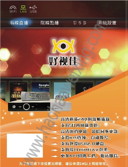 本公司主要经营产品:日本IPTV 日本网络电视 IHOME爱家 麦格IPTV 日本IHOME爱家 日本电视机顶盒 ,D_NET高清网络电视,122DISH.HD高清机顶盒,好视佳IPTV,138数码天空