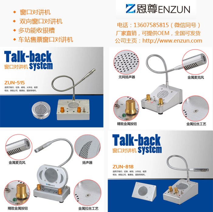 恩尊ZUN-515 窗口对讲机*:恩尊生产地址:福建漳州龙文区