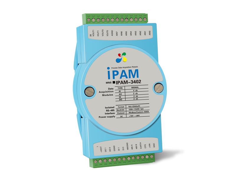IPAM-3402是混合I/O数据采集模块,模块的主要功能是进行模拟量输入信号采集,模块有4路的AI差分通道,每一组差分通道也可配置为2路的单端输入通道,以满足不同场合需求,适用于采集工业现场的各种电压和电流信号,采样分辨率为16位;模块还具有模拟量输出、数字量输入和数字量输出辅助功能。模块具有2路的模拟量输出通道,可独立控制输出,也可进行同步输出,输出分辨率为12位;模块还具有2路DI和2路DO通道,其中2路DI可配置为计数器功能。(更多资料请来电索取说明书)