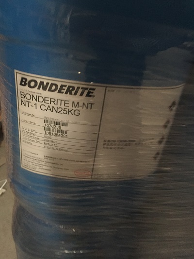 磷化液:锌系磷 化 Bond erite 958,Bonderite 6001,Bonderite 401,铁系磷化 Duridine 7760,脱脂磷化一体 Duridine 3990,纳米技术磷化 (环保) Bonderite NT-1-C,锰系磷化 PARCO LUBRITE 2,三元磷化 Granodine DL 2500,钢,镀锌,喷淋磷化 Bonderite 910,多金属铁系磷化 Bonderite 1090。