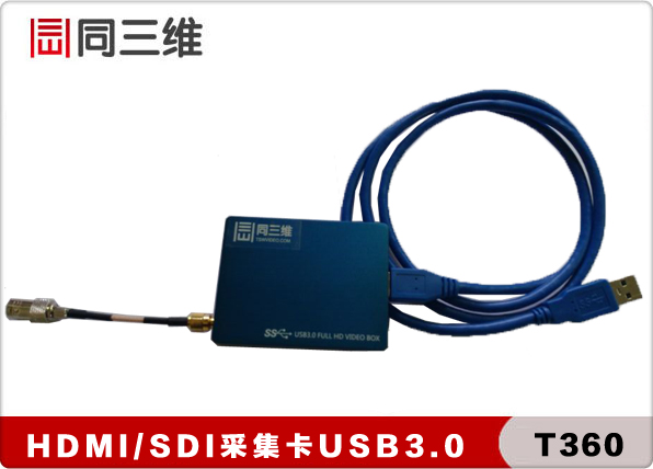 同三维T360一款支持HDMI 和SDI 1080P 60HZ高清视频采集盒,它采用了高速的USB3.0接口,同时采用UVC无驱设计,用户可以做到即插即用无需安装驱动。其*高分辨率可以实现1920×1080,支持真正10Bit实时HD全分辨率高清无压缩视频采集,实现真正广播级、 好莱坞电影级别的采集编辑,满足各种全*实时监视采集及抓图的需求。