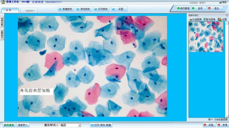 液基细胞学检测报告系统软件,也叫做宫颈细胞学检测报告系统、TBS图文报告系统、液基薄层细胞检测系统、液基图文报告软件,连接医用显微检测设备,获取其影像、图像信息,实现影像信息在工作站端的同步显示,从而进行图像采集,形成图文诊断报告,实现病人的文字、图像、影像资料的管理及分析、统计等功能。 巨渺科技提供*新版的软件,www.jm2015.com 可联系:18626001211 软件的特点: 快速安装:一般三分钟可装好。 简单易用:会打字一般五分钟即可熟练操作。 功能丰富:报告设计灵活、诊断模板术语丰富、统计分析强大。 使用稳定:产品多年锤炼、稳定可靠。 软件实用功能模块: 1.用户管理模块:提供用户登录及权限管理,可方便设定不同权限的用户。 2.信息录入模块:支持逐个病人登记或批量信息登记(适合体检、预约等情况)。 3.影像显示模块:支持高清信号,可宽屏、双屏显示。 4.图像采集模块:图像可用过脚踏开关、控制手柄、快捷键、鼠标多种方式采集,可区域截取采集,仅采集有用的信息。 5.图像处理模块:可进行正、负像采集,左右镜像、上下镜像、区域采集,矩形、圆形采集,具有标注、测量、放大、反转、镜像、反色、伪彩等数十种图像处理方式。 6.模板管理模块:模板丰富,编辑方便。可通过选择器选择模板、单选、多选模板、仅选择词条等。模板排列结构可以*拖动改变,方便用户归类整理。 7.报告设计模块:功能极强,报告单上所有项目均可自由设计,如院标、电子签名、图片框数量、科室电话等,项目的位置、大小、数量、颜色、字体均可自由调整。 8.打印控制模块:打印纸张支持任意大小、打印时诊断字体可*调整方便,文字较多可分页打印。 9.快速检索模块:可方便查看未采图、未打印,当天、昨天、本周的报告,及时进行批量处理。 10.病历查询模块:可对所有项目进行精确查询、模糊查询、组合查询,查询结果可导出EXCEL或打印报表。 11.病历统计模块:可按检查医师、送诊科室、送诊医师等任意项目进行灵活统计,可统计工作量、费用等内容,统计结果可打印自定义报表。 12.网络模块:可将病历报告自动生成网络报告,供网内其它用户调阅,支持网络读取登记信息,支持病历资料的网络查询。 13.通用接口模块:提供开放的数据接口,可以方便的与其它公司his,pacs系统互连,实现信息共享。 14.数据安全系统:具有丰富完备的数据备份功能,同时提供国内*的自修复功能,重装操作系统后,只需修复一下工作站,则一切复原,所有病历、模板、报告、图片均不会丢失。 15.更多功能请到巨渺科技(www.jm2015.com)网站了解。(Jumtg002) |
