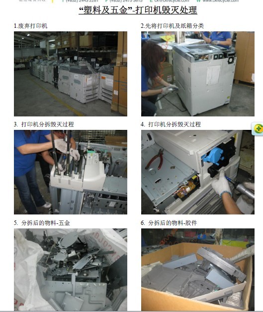 本公司*提供一些不合格、不良、废旧的打印机和复印机的设备拆解以及环保销毁处理服务,减少库存压力,让这些废弃物不要流露到市场中,以免给环境造成一定的污染,香港树基环保回收有限公司是您良好的选择,欢迎前来咨询