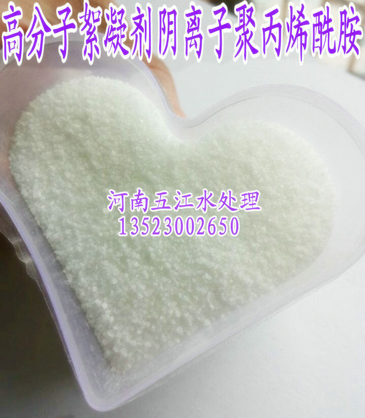 阴离子聚丙烯酰胺(APAM)是水溶性的高分子聚合物, 主要用于各种工业废水的絮凝沉降,沉淀澄清处理,如钢铁厂废水,电镀厂废水,冶金废水,洗煤废水等污水处理、污泥脱水等。还可用于饮用水澄清和净化处理。由于其分子链中含有一定数量的极性基团,它能通过吸附水中悬浮的固体粒子,使粒子间架桥或通过电荷中和使粒子凝聚形成大的絮凝物,故可加速悬浮液中粒子的沉降,有非常明显的加快溶液澄清,促进过滤等效果。