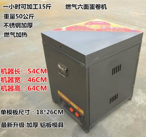 (注意有些不良商家为了降低成本,采用铁质加热板,升温慢降温也慢导热不良容易烤糊,浪费燃气),快板液化气加热方式,具有省时省力节约能源的功能,一机多用,一台机器可以同时制作6种不同口味的蛋卷产品,满足了客户的不同需求,也极大的提高了工作效率,增加经营收入。