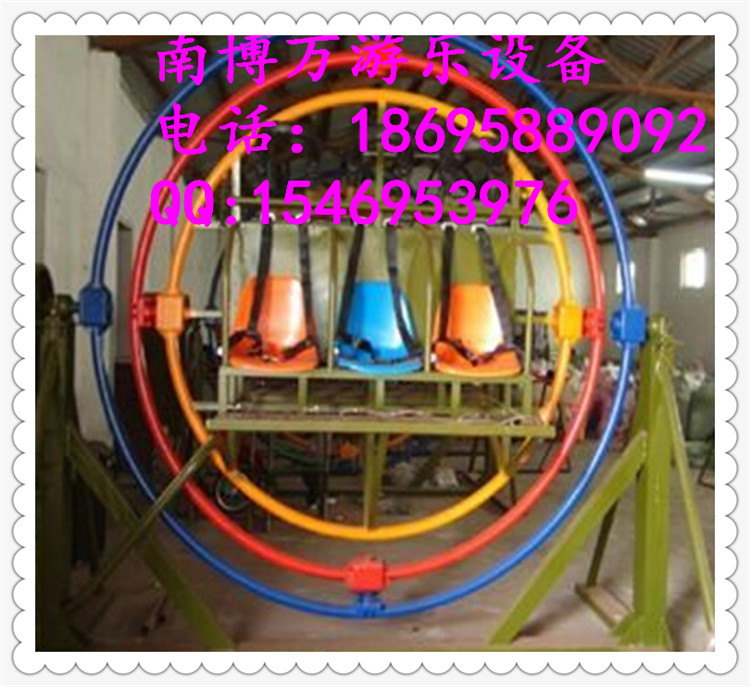 环中环又叫三维太空环,三维太空环由训练飞行员和宇航员的模拟装置演变而来的游艺设备。游客在其中360度任意旋转,速度时快时慢,它可使你体会到三维空间自由旋转的特殊感受,放松全身肌肉,既锻炼身体又趣味无穷。它是一项勇敢者的运动,也是绝无危险的运动,自由的三维旋转意境,再加上绚丽多彩的外型,令人迷恋不己。占地面积小、操作维护简单、经营效益高是该产品的特点,该产品是青少年朋友的*爱,投资者的*选择。