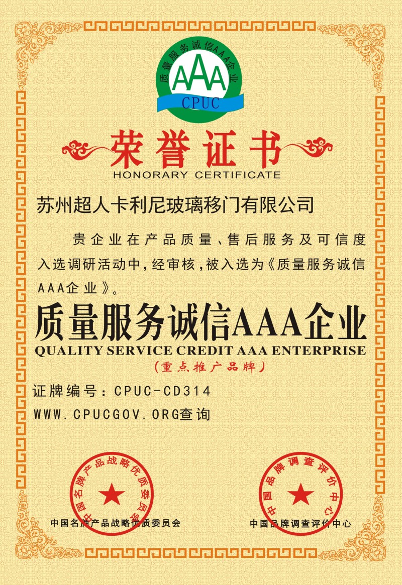 《质量.服务.诚信AAA企业》 《中国百强良好企业》