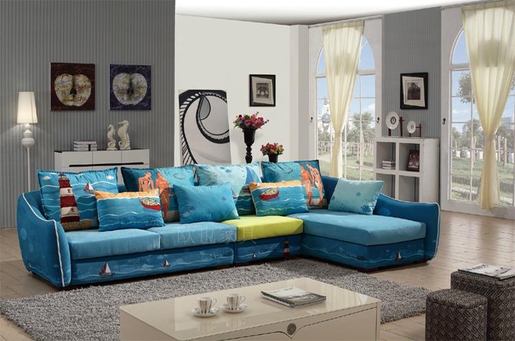 广州欧也家居定制 地中海蓝布艺沙发可拆洗
