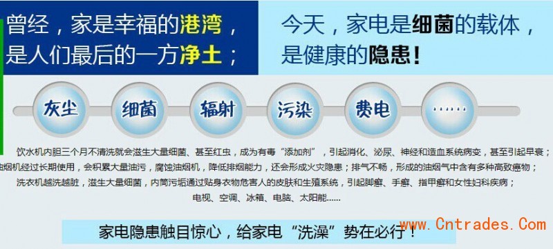 目前国内众多的格科*地暖清洗公司、太阳能清洗公司、家电清洗公司已经在全国部分地区抢占市场,抓住这其中的巨大商机。而且越来越多的人开始加入进来。国内*的清洗服务团队全面开花。众多的新闻媒体、电视、广播纷纷开始宣传这些电器定期清洗的必要性,国家亦开始强制要求在部分场合定期清洗电器。在可以预见的几年内,家电清洗行业即将带来大商机、大发展,县级百万级市场份额指日、千万级的升级也将成为可能。谁先把握住了机会,占领了市场,谁就将拥有其中的巨大财富。