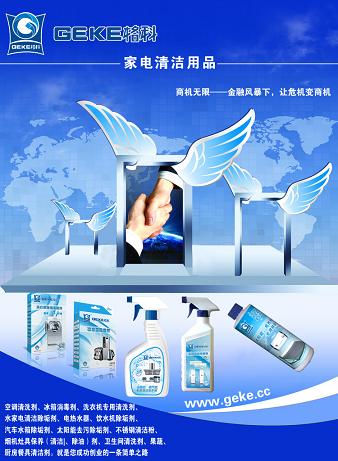 格科供应的产品有:饮水机清洗剂 /冰箱清洗剂 /洗衣机清洗剂/ 空调清洗剂/ 太阳能水箱除垢剂 /豆浆机除垢剂 /油烟机燃气灶清洗剂 /麦克风电话机消毒剂 /不锈钢粉 /锅炉除垢剂 /地暖管道除垢剂 /汽车水箱除垢剂 /汽车蜡/管道疏通养护清洁剂/卫浴清洁剂等23种清洁消毒除垢用品。