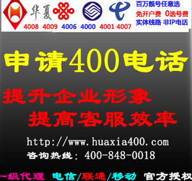 中国电信、联通、移动授权网上办理400电话的公司,智能400电话申请办理开通受理业务由我们负责,若你要咨询400电话价格,400电话代理加盟,400电话办理开通流程和手续,400电话售后问题,都可以咨询我们的客服人员。