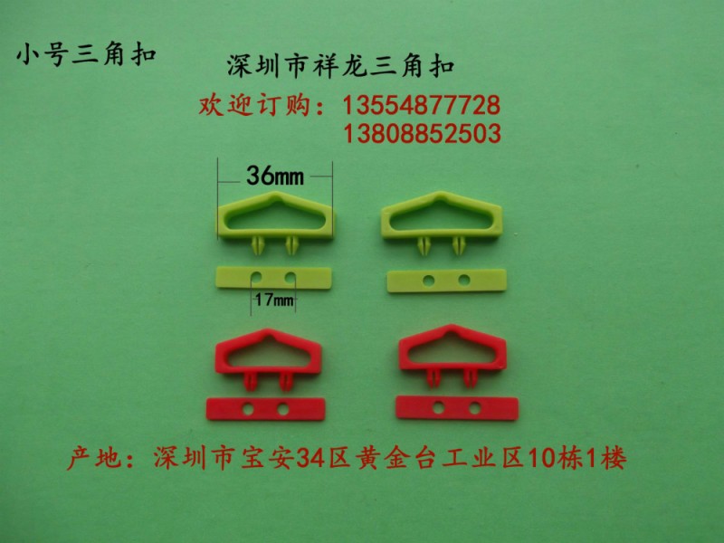三角扣、大/小三角扣、塑胶提手、 彩盒拉手、飞机扣、立体飞机扣、平体飞机扣、蝴蝶边飞机扣、全牙圆圈扣、四牙圆圈扣、彩盒、纸箱、包装盒、礼品盒等塑料提手、塑料纸箱扣、四方纸箱扣、防尘纸箱扣、塑胶拎手、叉耳扣、大中小胶袋叉耳、挂钩、长/短展示挂勾、提手把、手提扣、塑料手挽带、塑料手提带、塑胶手揪、塑胶手提扣、纸箱扣、塑胶提手扣、按扣、胶手腕、扇柄、饮料提手扣等塑胶、塑料制品。款式齐全,价格优惠,质量好,交货快。