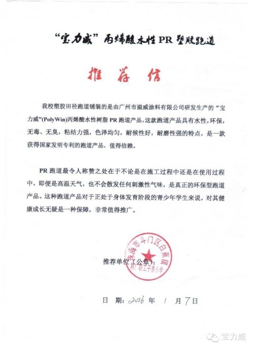 感谢阅读本文章,我们等待您电话咨询哪里有宝力威水性PR跑道,口碑好的丙烯酸水性跑道,四川丙烯酸水性跑道信息