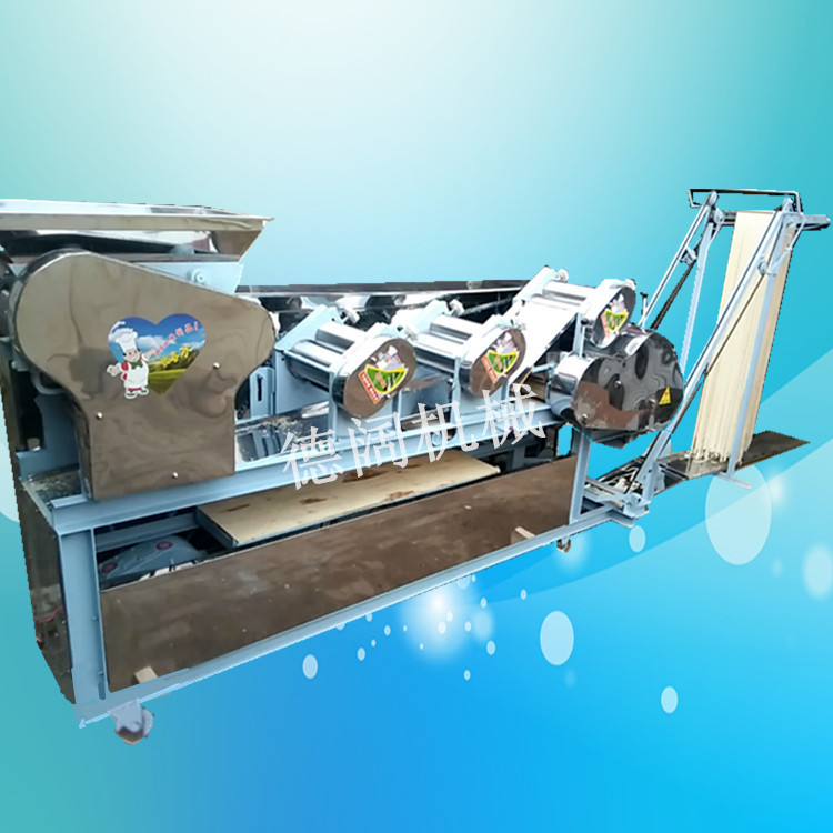 德阔新型多功能面条面皮机,博采众长,由多组面辊排列式组合而成,自动挑条一次成型,流水线式生产,自动化程度高,操作简单,*,安全卫生。