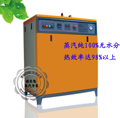 1.诺贝思材质 1.内胆采用锅炉碳钢材质,蒸汽100%干净,使用寿命长。 2.不锈钢水箱,延长使用寿命 3.外壳使用加厚*钢板,采用特殊喷漆工艺,美观* 2.节能 1.体积小,蒸汽纯100%无水分,热效率达98%以上。 3.安全 1.水箱缺水是自动报警,水泵自动停止工作,防止无水干运转现象,延长使用寿命 2.水位计装有观测灯,更加方便快捷观察水位。 3.压力控制自动断电加热,弹簧安全阀压力过高自动排气保障安全 4.水电独立箱体,方便维修养护,安全可靠 4.便捷 1.水箱可自动上水,也可人工上水。 2.新颖美丽大方的外观,体积小,便于携带 3.指一动,全自动诺贝思 1、压力控制:当工作压力达到高设定压力时电热管自动断电停止加热。加热指示灯显示不亮;当工作压力降至低设定压力时电热管自动恢复加热,加热指示灯显示发亮。 2、水位控制:当锅筒水位升至水位时,水泵自动断电,停止加水,进水显示灯显示不亮,当水位降至水位时,水泵自动通电给锅筒加水,进水指示灯显示发亮;当外界停水或水泵故障灯原因导致不能给锅筒加水,同时电热管断电停止加热,加热指示灯显示不亮,此时操作工作人员应及时停炉查清故障原因,直至故障排除为止。 洗涤熨烫行业:干洗机、烘干机、水洗机、脱水机、熨平机、熨斗、等设备配套使用。 食品机械行业:豆腐机、蒸箱、灭菌罐、包装机、涂料设备、封口机、等设备的配套使用 生物化工行业:发酵罐、反应釜、夹层锅、搅拌机、乳化机等设备的配套使用 其他行业:(油田、汽车)蒸汽清洗行业、(宾馆、宿舍、学校、搅拌站)热水供应、(桥梁、铁路)混凝土养护、(休闲美容会所)桑拿洗浴、热交换设备等
