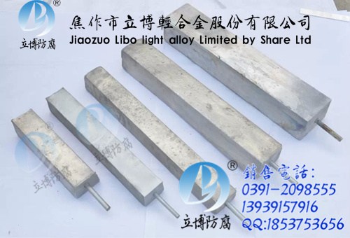 用途:主要用于地下及淡水中的输油、输气,供排水管线、地下电缆、化工、通讯、港湾、船舶、水库闸门等工程的防腐保护。例如石油燃气管道,储罐,热水交换器,冷凝器等.我们可生产高电位及低电位镁阳极,我们的产品采用*的原材料来生产,符合*,争取达到产品质量国际良好, 国内好。