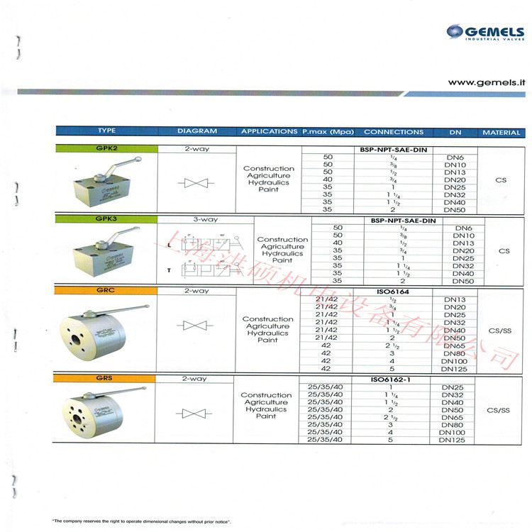 Gemels球阀-意大利Gemels SRL成立于1988年,其宗旨是扩大工业球阀生产市场。Gemels球阀的*和*的态度,得到了客户的许可,并承诺客户Gemels 将主导工业阀门市场。30多年来,公司一直以不断更新技术和生产多功能Gemels球阀。