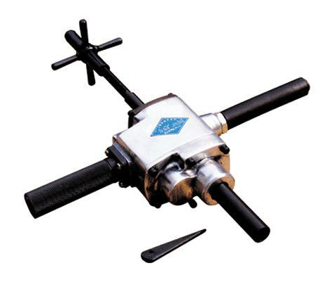 矿用轨道气钻主要有叶片式发动机、减速箱、进给机构、换向阀等组成。使用时,转动进气操纵手柄,压缩空气经换向阀进入叶片式发动机推动转子旋转,两组齿轮副减速后传给主轴,实现钻孔。逆时针转动开头可实现正转,顺利针转动开头可实现反转。进给运动可用手转动进给手柄来实现。