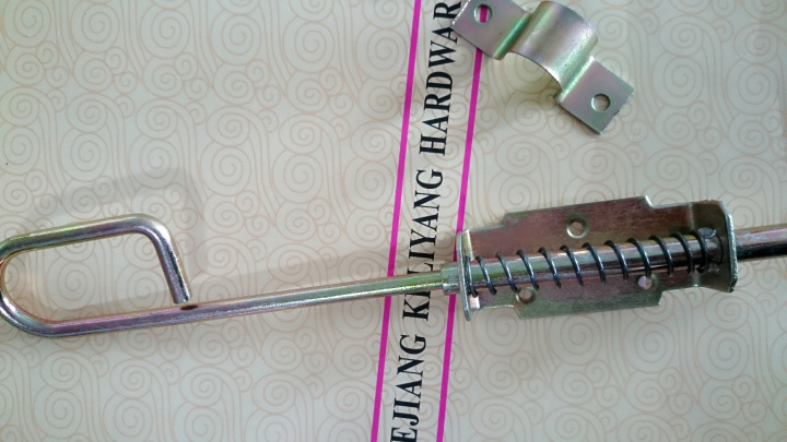 插销,是一种防止门打开的简单部件,一般是金属的,分两部分,一部分带有可活动的杆,一部分是一个鼻儿。通常带杆的部分固定在门上,鼻儿固定在门框上,并且位置要对应。使用时,将杆插入鼻儿中即可。比锁的结构简单很多,但效果相当,只是锁在门外,插销在门里。