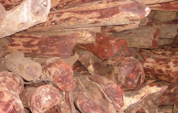 属于紫檀属的木材种类繁多,但在植物学界中公认的紫檀却只有一种,“檀香紫檀”,俗称“小叶檀”,别名青龙木,主要产于印度及马来半岛、菲律宾等地,中国湖南、广东、云南也有少量出产。小叶檀的形态特征:乔木,树干通直,树皮深褐色,深裂成长方形薄片。树干的树液呈深红色。小叶3-5片,一般为椭圆或卵形,长9-15cm,花黄色或带黄色条纹,花期为11-12月,果呈园形,果期4-5月。