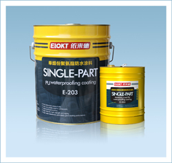 E-203单组份聚氨酯防水涂料的反应机理是聚氨酯预聚体中的NCO端基与空气或基层中的潮气接触反应固化成膜,可在潮湿基面和复杂结构的工程上施工。涂料固化后形成一层无缝、粘结力强、整体而富有弹性、坚韧的防水胶膜。