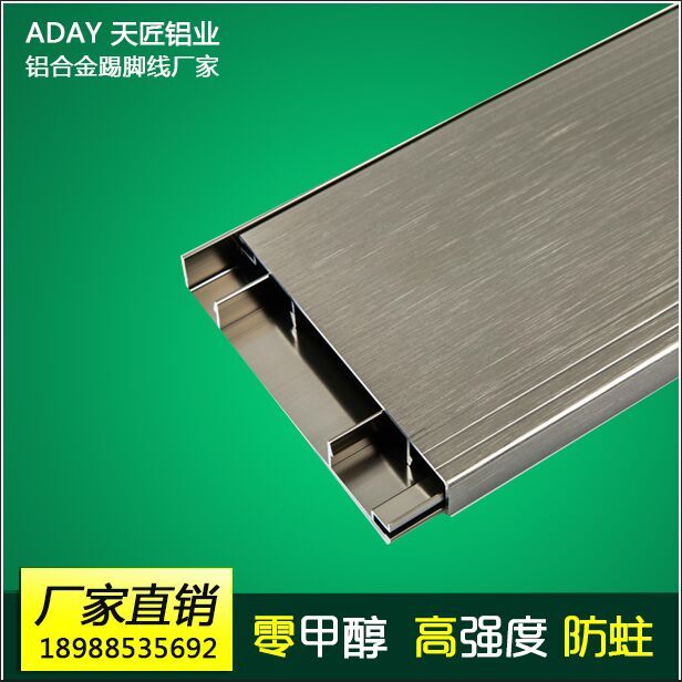 1、铝合金踢脚线无需油漆和维护保养,长新不旧,免除你维护保养的劳累和麻烦,综合成本低。