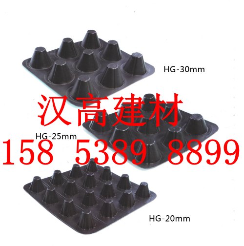 汉高牌排水板是由聚乙烯pe塑胶底板经过冲压制成圆锥突台(或中空圆柱形多孔)而成。圆锥突台的顶面胶接一层过滤土工布,以阻止泥土微粒通过,从而避免排水通道阻塞使孔道排水顺畅。 传统的排水方式使用砖石瓦块作为导滤层、使用较多的鹅卵石或碎石作为滤水层、将水排到*地点。而现在用排水板取代鹅卵石滤水层来排水则省时、省力又节能、节省投资、还能降低建筑物的荷载。车库顶板绿化排水板有如此能力源自它独有的特性: