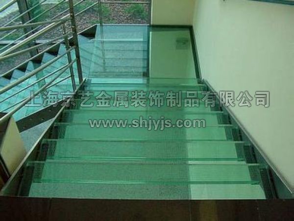 玻璃楼梯的踏板通常采用的是加胶玻璃。在上层钢化玻璃与下层非钢化玻璃之间加一层加胶膜,使玻璃踏板在坚固的同时更有韧性。