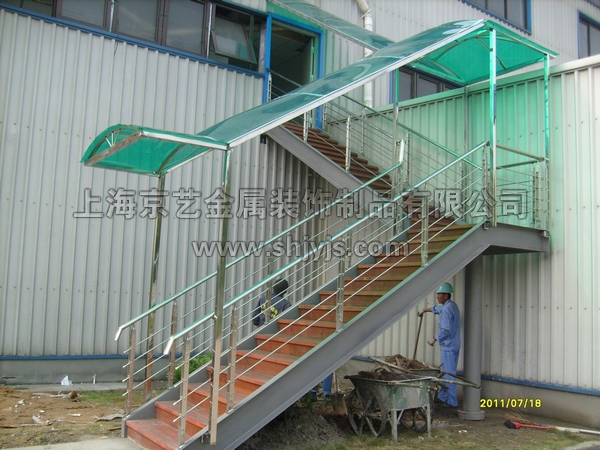这款楼梯是我公司2011年6月为宝安公路一客户精心定制,材料采用Q235*型材,防腐木实木踏板饰面,氟碳油漆表面处理。