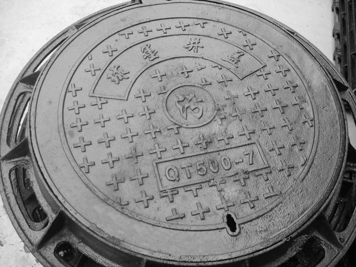 铸铁井盖分为 球墨铸铁井盖和灰铸铁井盖,一般来说,同等重量的球墨铸铁井盖要比灰铁井盖抗压能力强。灰铁井盖采用的材料一般为HT200,球墨井盖采用材料一般为QT500-7。