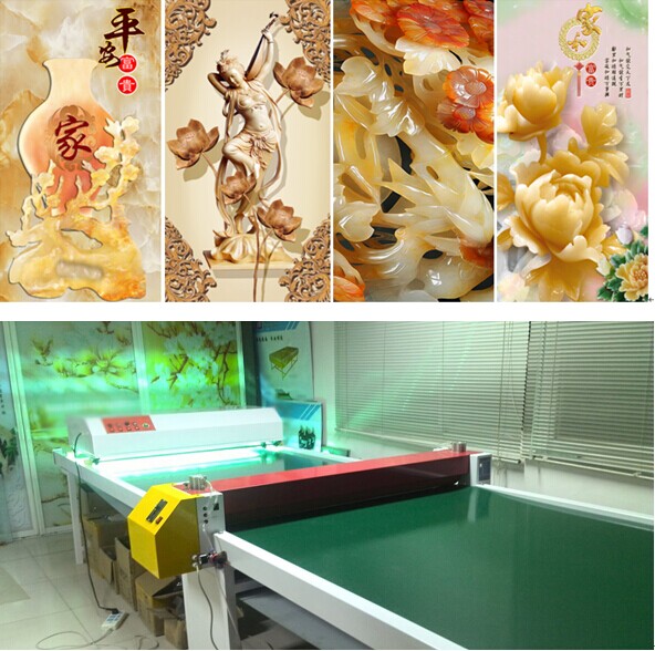 全自动冰晶画生产设备,它是我单位*新款冰晶画生产设备,可以生产冰晶画?无框画?三联画、玻璃移门?厨柜门?电视背景墙等?它具有投资少,见效快,风险小且收益可观等优点,一个人两个人就可以生产,冰晶画采用PS成像技术将照片?图片等通过电脑及图像高保真处理后,通过现代化的生产设备以高分子原料紫外光固化后强力附着在普通玻璃后面,成品正面坚硬*,不怕刀刮水洗?耐酸?耐碱?耐冷冻?图像清澈透明,双面欣赏?冷光棱角?越擦越亮?实现科技化?艺术性?人文化和流行时尚的结合,具有画龙点睛的作用,极大满足了主人的家居品位,明显提高装饰档次,开创了个性移门产业化新时代,引领家居移门向健康环保个性化方向有序发展,绿色环保?防潮?防腐?*?不脱层?使用寿命长。
