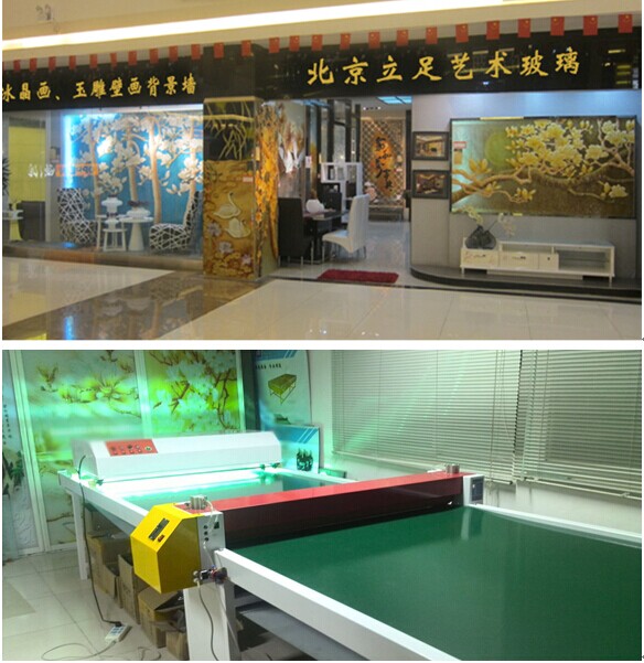 千百变冰晶画、玉雕壁画背景墙、水晶墙地砖,新一代气旋式UV冰晶画设备,加工的全透、半透、不透冰晶画固化后完全看不到胶水,不会对用胶产品产生外观影响,粘接力度强,对各种墨水不具腐蚀性;采用紫外光(UV汞灯)照射固化,几秒钟定位,三分钟粘合后达到防水、耐老化、耐变黄,良好效果。