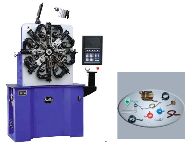 七、 适用于生产双扭簧、直形簧、宝塔簧、拉簧、矩形簧,线材成型、钢皮涡簧、发条及各种花式簧、复杂高难度异型簧(电脑弹簧机)。