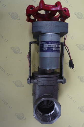 阀门电机采用直流电机,接线时务必接线正确,否则不正常工作。判断接线正确的方法有两种:1在断电状态下,顺时针(即关阀)转动电动阀门手柄,阀门接线端子上端的红色发光管亮,逆时针(即开阀)转动手柄,齿轮箱上红灯发亮,反之说明电极线接反。2电动阀门的电机接线与接线端子连接后,通电按加水按钮,此时阀门应逆时针转动。阀门传感线接入正确后,按加水或减水时阀门上的指示灯应一亮一灭。下图为带传感器的阀门元件图: