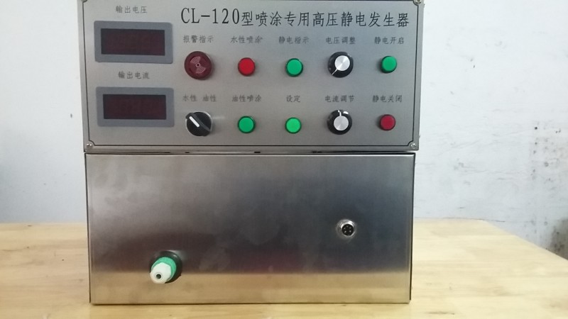 设计,当喷涂工件贴近雾化器时,静电自动降压,防止产生强火花现象。当高压静电输出短路,漏电电流达到设定保护值时机器自动停机并报警,有效地确保设备运行及作业安全。根据实际情况无级调节电压输出满足喷涂作业要求。设备可连续运行,使用寿命长等优点。产品技术参数: 工作电压 :220V--240V 50/60HZ (AC) ; 输出电压 :0-120KV (负极 可调节) ; 输出电流 :0-100UA 。(我司也提供高压静电发生器维修和保养服务。)越来越注重环保的今天,我司顺应时势推出水油通用静电发生器。轻松实现水性漆与油性漆都能喷涂的功能。如果您在静电喷涂水性漆遇到困难,欢迎致电我们。将为您提供油性改水性设备服务。