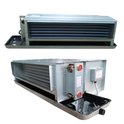 A. 风机为镀锌钢板*小型低噪声离心风机,采用超广角镀锌钢板蜗壳和镀锌钢板多叶离心风轮。风轮均进行严格动静平衡试验,确保风机振动小、噪音低;同时风轮与电动机可有多种选配,以满足风机盘管各种规格风量的要求。