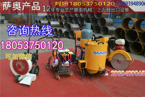 道路切割机有电动和汽油,柴油,13.0本田汽油机或 7.5kw电动,9马力柴油机,进口轴承,4个厚板筋,可安装400或500mm大片,150/170mm切割深度,自重145kg。