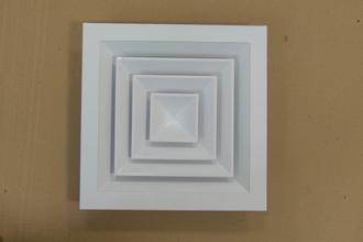 方形散流器以其美观,简洁的特点而广受欢迎。适用于各种开阔需要新鲜空气交流的场合(车站,酒楼,歌剧院,办公室等)。该产品一般以600*600MM为常用规格。每个框间距为7.8MM。散流器其结构形式有多样,有1~4不同方向散流的形式。能满足所有类型天花板的要求。散流器外框和内芯可分离,拆装容易,便于调节风量。可根据要求配置人字闸。